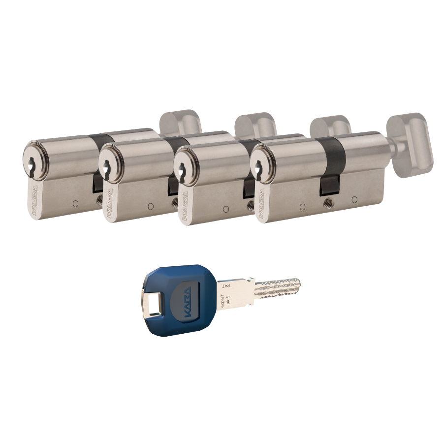 Set içindeki 4 barelin tamamı aynı Expert Plus anahtar koduna göre üretilir. Böylece tek bir anahtar ile ev, ofis, depo, bahçe/garaj gibi dört farklı kapıyı yönetebilirsiniz.