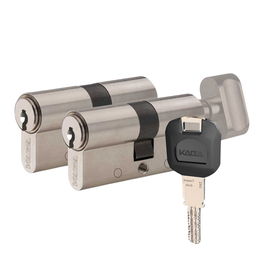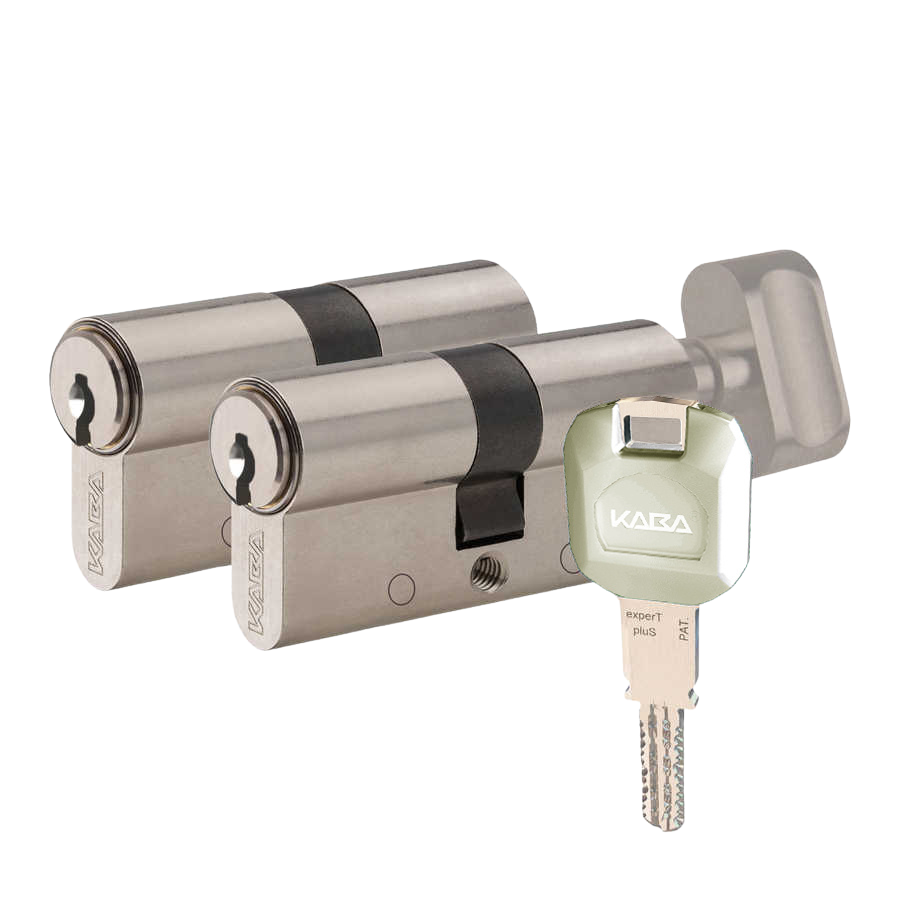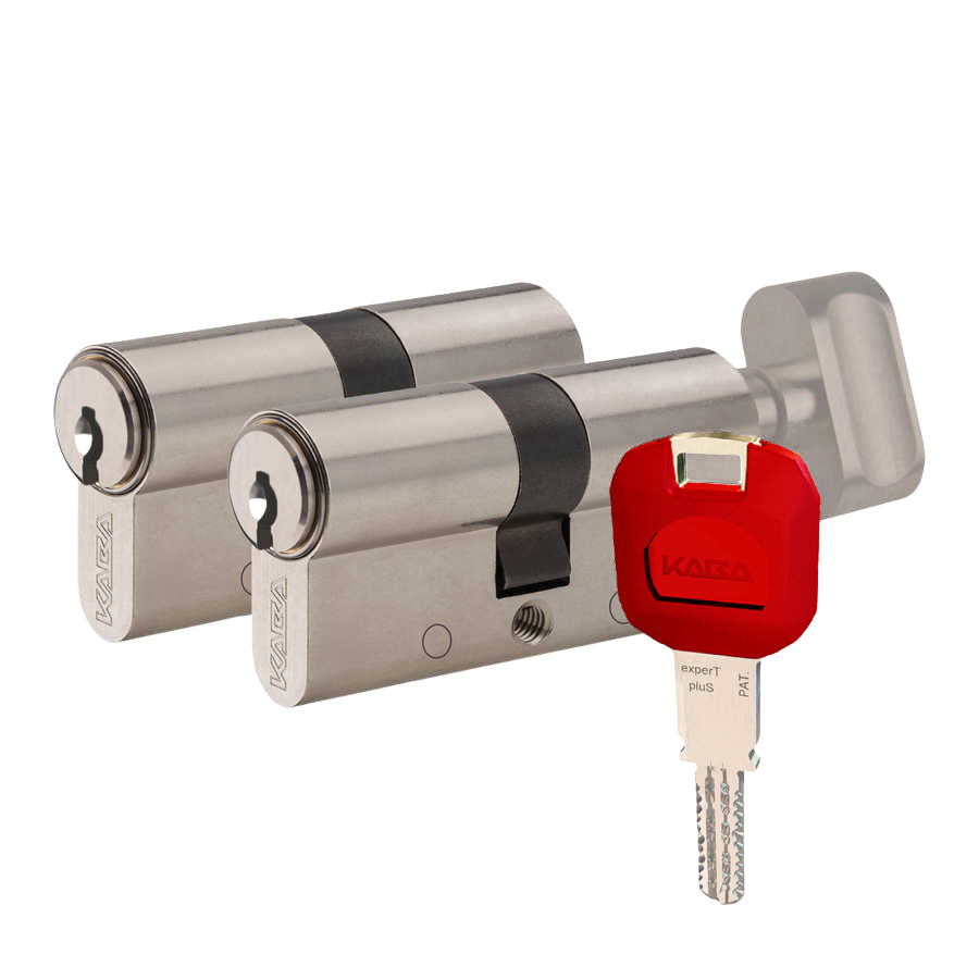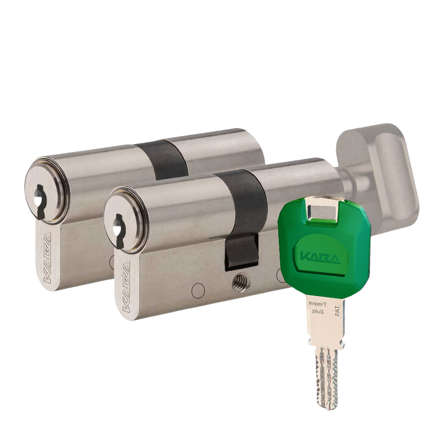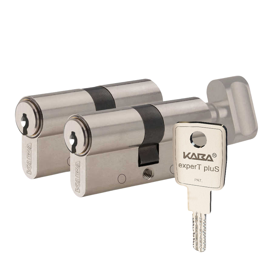 2 adet Kaba Expert Plus barel Ortak anahtarlı ikili set Çelik takviyeli gövde Anti–drilling / picking / bumping Patenli anahtar + güvenlik kartı SAT Hizmetli anahtar opsiyonu