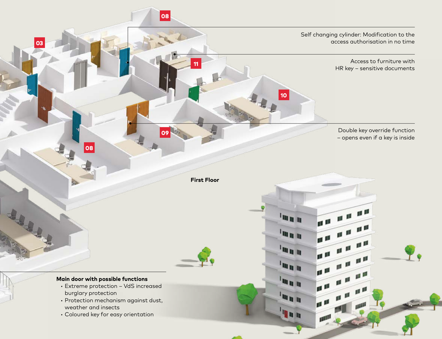 Tüm ölçüler İş yerleri - Ofis katları ve departmanlarda master anahtar ve kilit sistemi