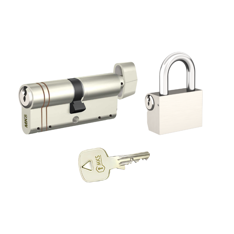 MKS Axis Guard ortak anahtarlı barel + asma kilit seti; kapı kilit göbeğiniz ve asma kilidiniz arasında tek anahtar ile tam uyum sağlar. Özel ölçü barel, opsiyonel çelik takviye, delinmeye karşı çelik pimler ve güvenlik tuzağı ile yerli üretim yüksek güvenlik çözümünü, kapı dışındaki kilit noktalarına da taşımanıza imkân verir.
