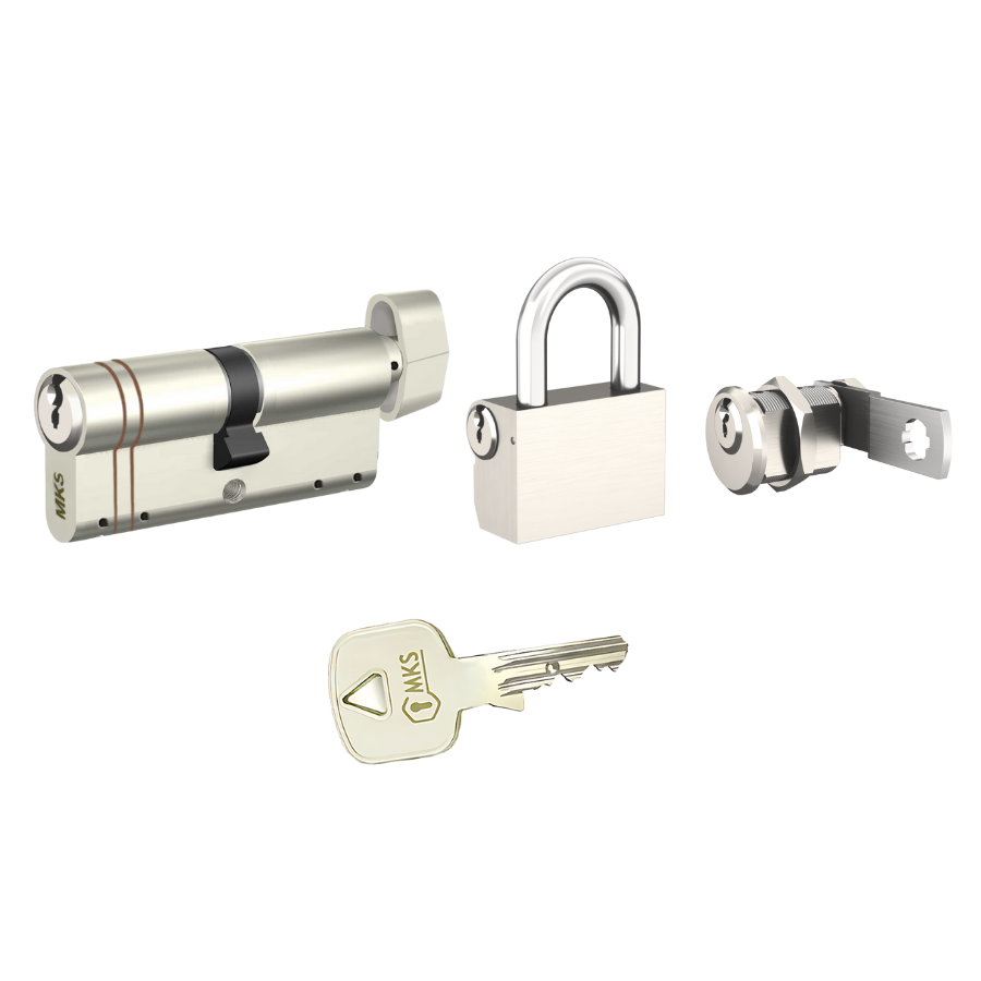 Kapı, mobilya ve dış/yardımcı noktalar için üç ayrı kilidi tek anahtar altında toplamak isteyenler için tasarlanmış MKS Axis Guard ortak anahtarlı set. Kapıda özel ölçü Axis Guard barel, içeride mobilya kilidi ve dış/yardımcı kullanımda asma kilit – hepsi aynı Axis Guard anahtar mimarisiyle çalışır.