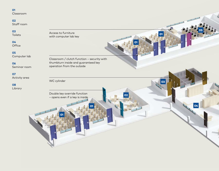 Tüm ölçüler Okul - Dershane ve eğitim birimlerinde master anahtar ve kilit sistemi