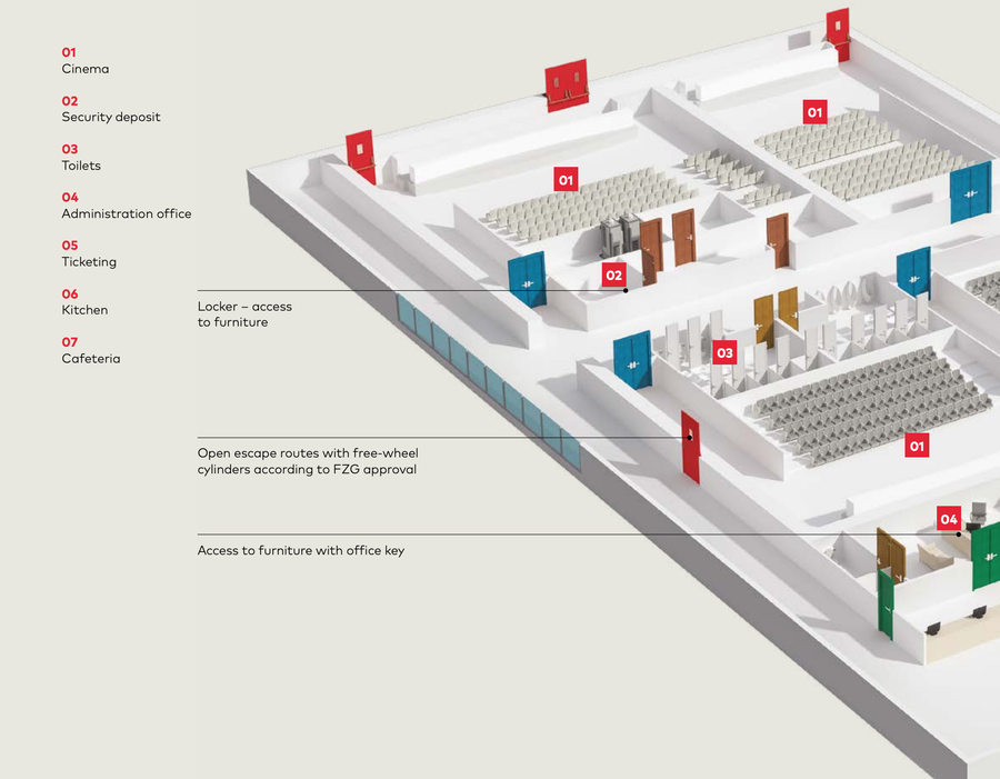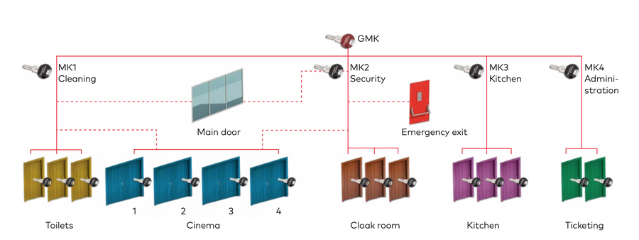 daha iyi bir güvenlik zorunlu hale gelir. Master anahtar sistemi, tiyatro ve sinema komplekslerinde çoklu